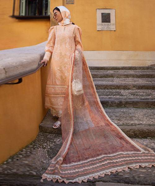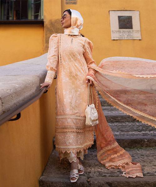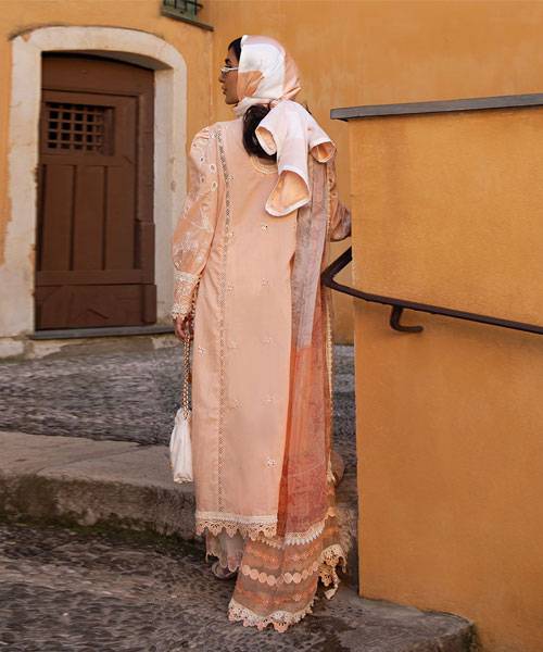 Ansab Jahangir Zoha Luxury Lawn Collection ’25 – ALLURING APRICOT
