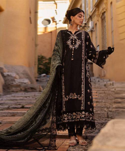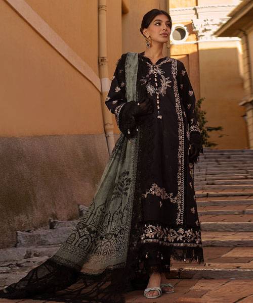 Ansab Jahangir Zoha Luxury Lawn Collection ’25 – BLACK LADY