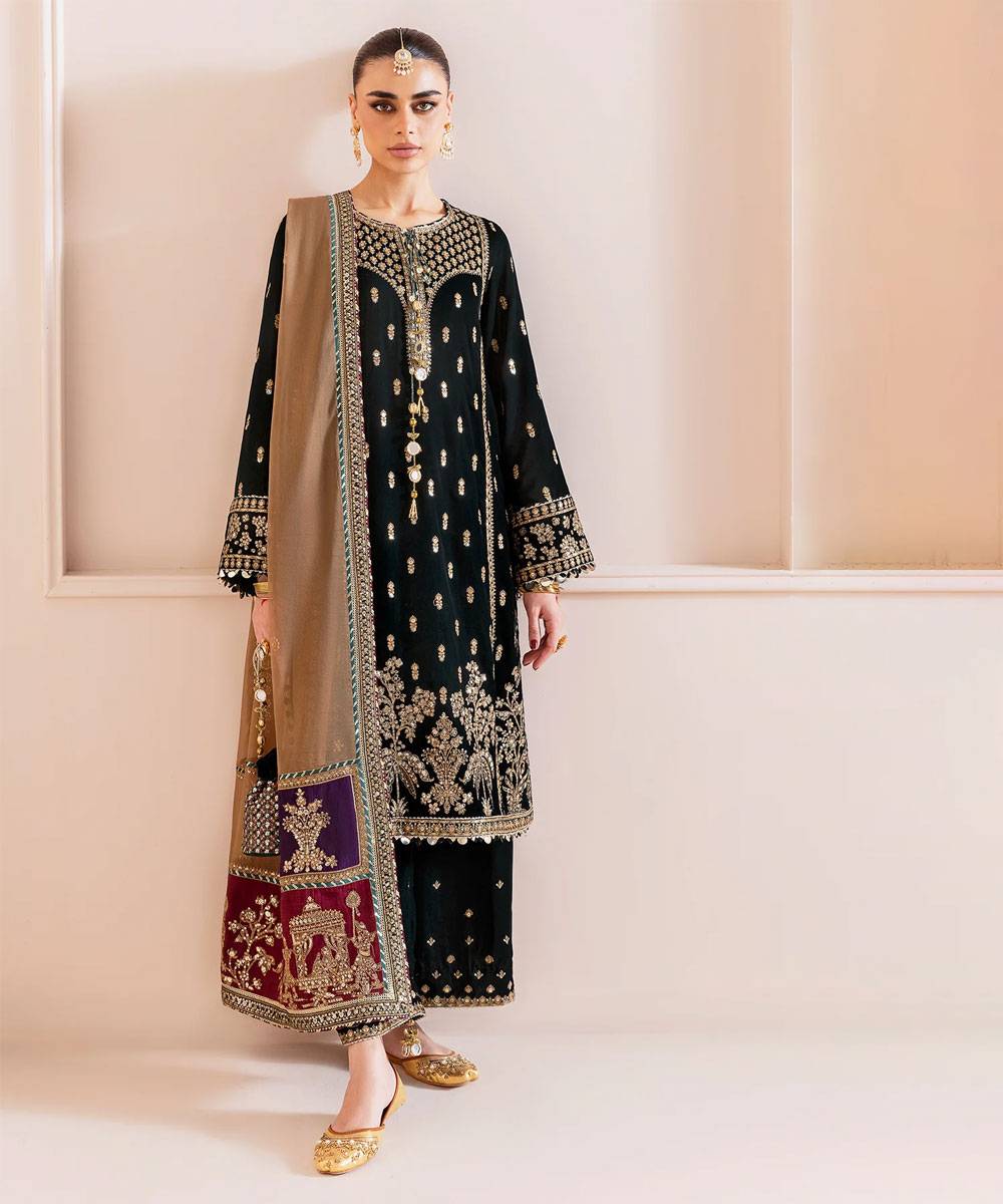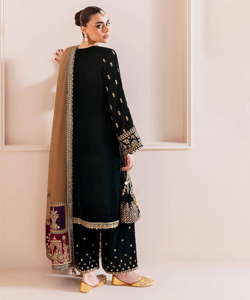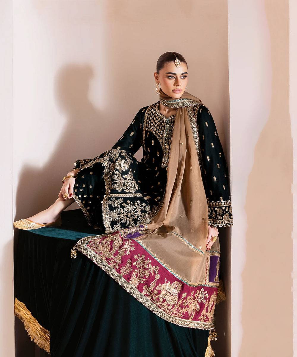 Embroidered Pure Velvet Front, Back & Sleeves Borders