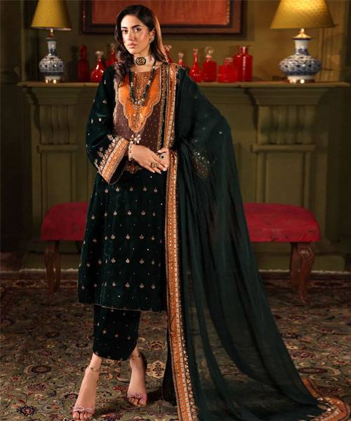 - Embroidered Dyed Velvet Trouser 2.25 Meter