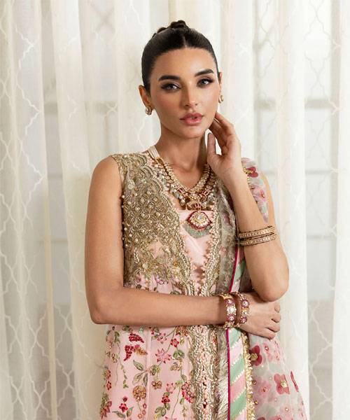 - 4.25 Meters Hand Appliqued Gota Worked Border For Lower On Light Pink Rawsilk