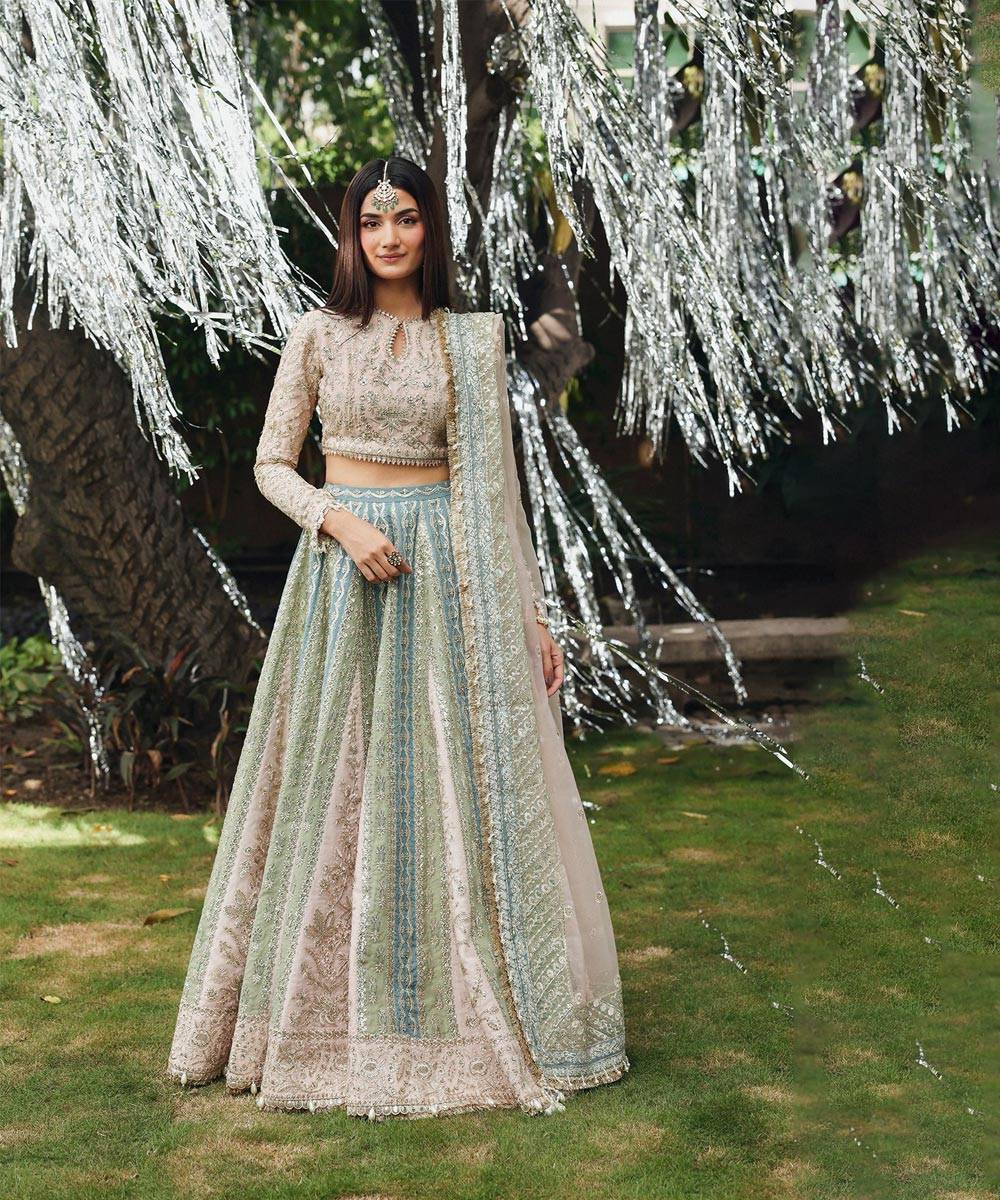 - green organza embroidered dupatta 4 side border a 7.90 m