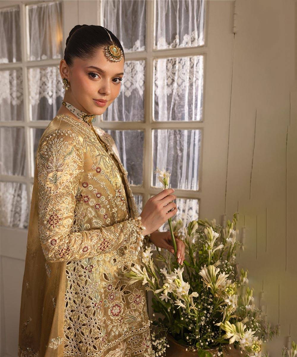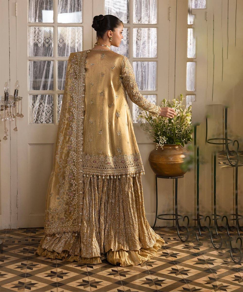 - golden tissue zari embroidered dupatta 2 side border 3.95 m