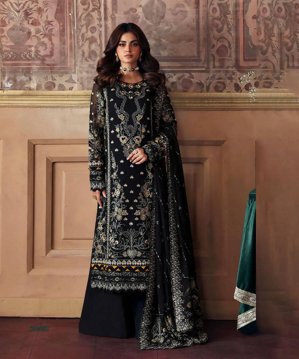 - Hand-embellished, adda-worked, embroidered and Sequined Organza border for front