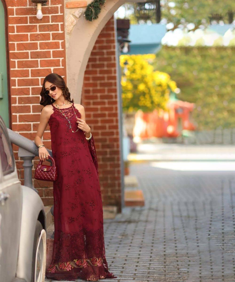 Noor By Saadia Asad Luxe ChikanKari ’26 – D-8A Deep Garnet