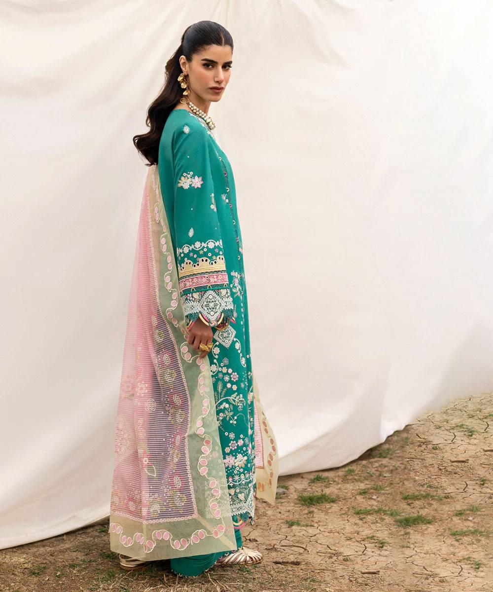 Embroidered Sleeves Lace on Charmeuse Silk x2 - Jacquard Weaved Block Printed Dupatta