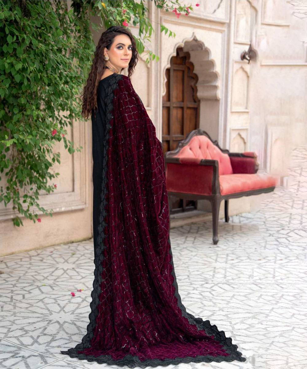 - Embroidered Velvet Shawl