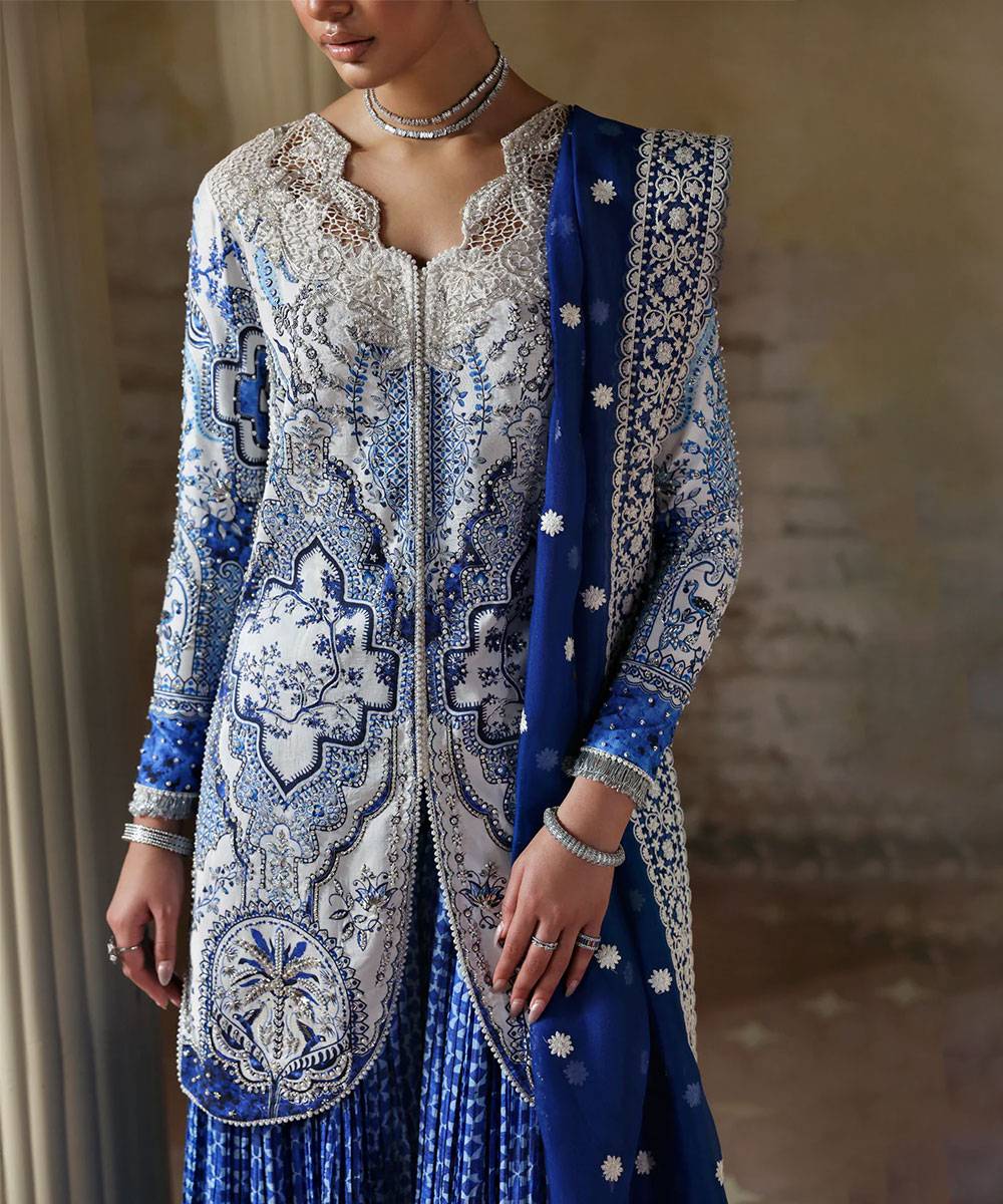 • 1 Pc – Printed & Hand-Embellished Front Left Panel (Silk)