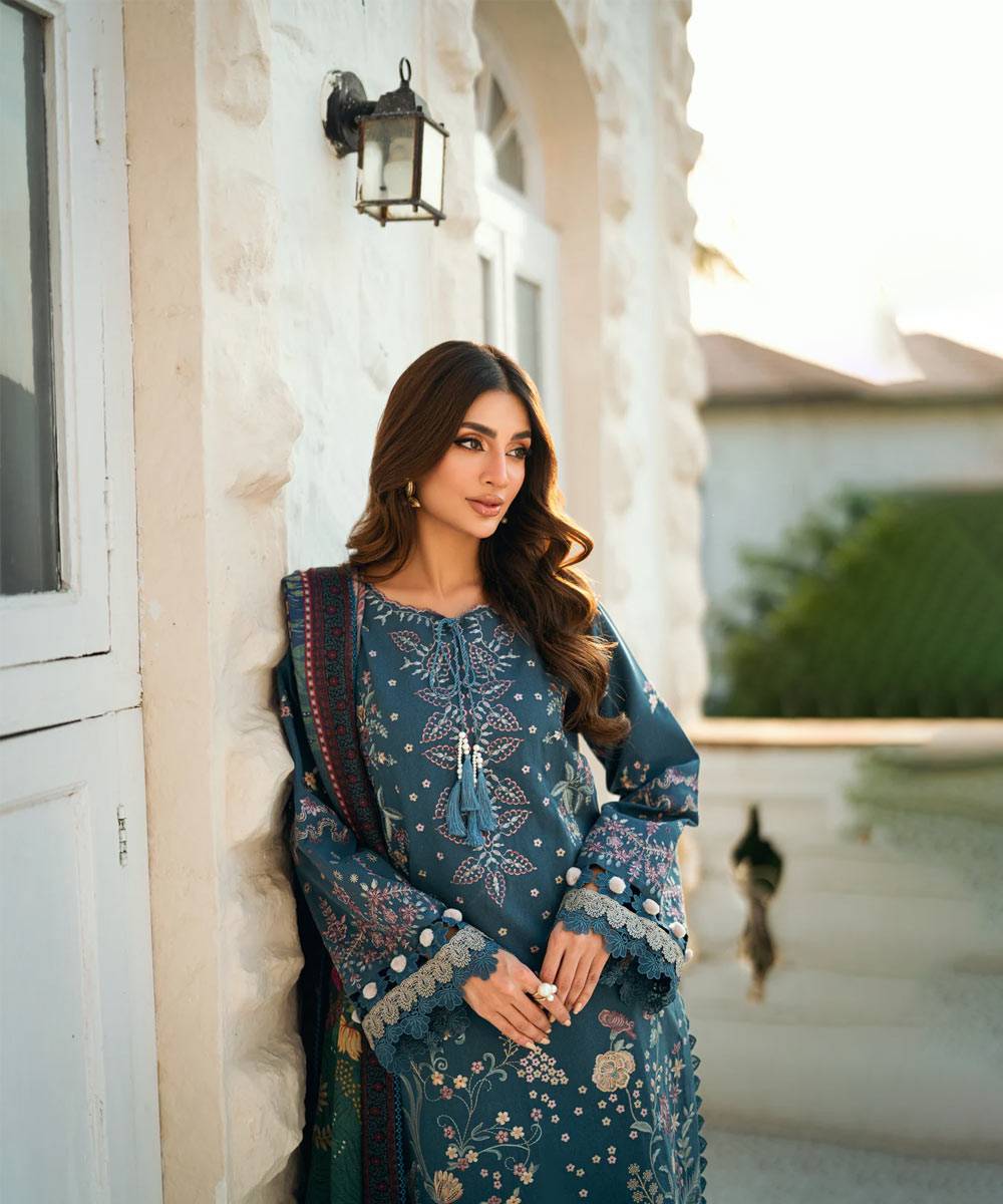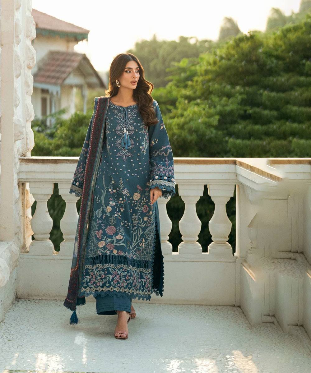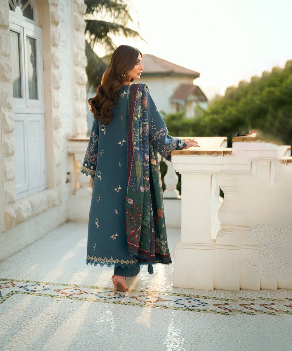 Digital Printed Pure Wool Shawl - Dyed Trouser