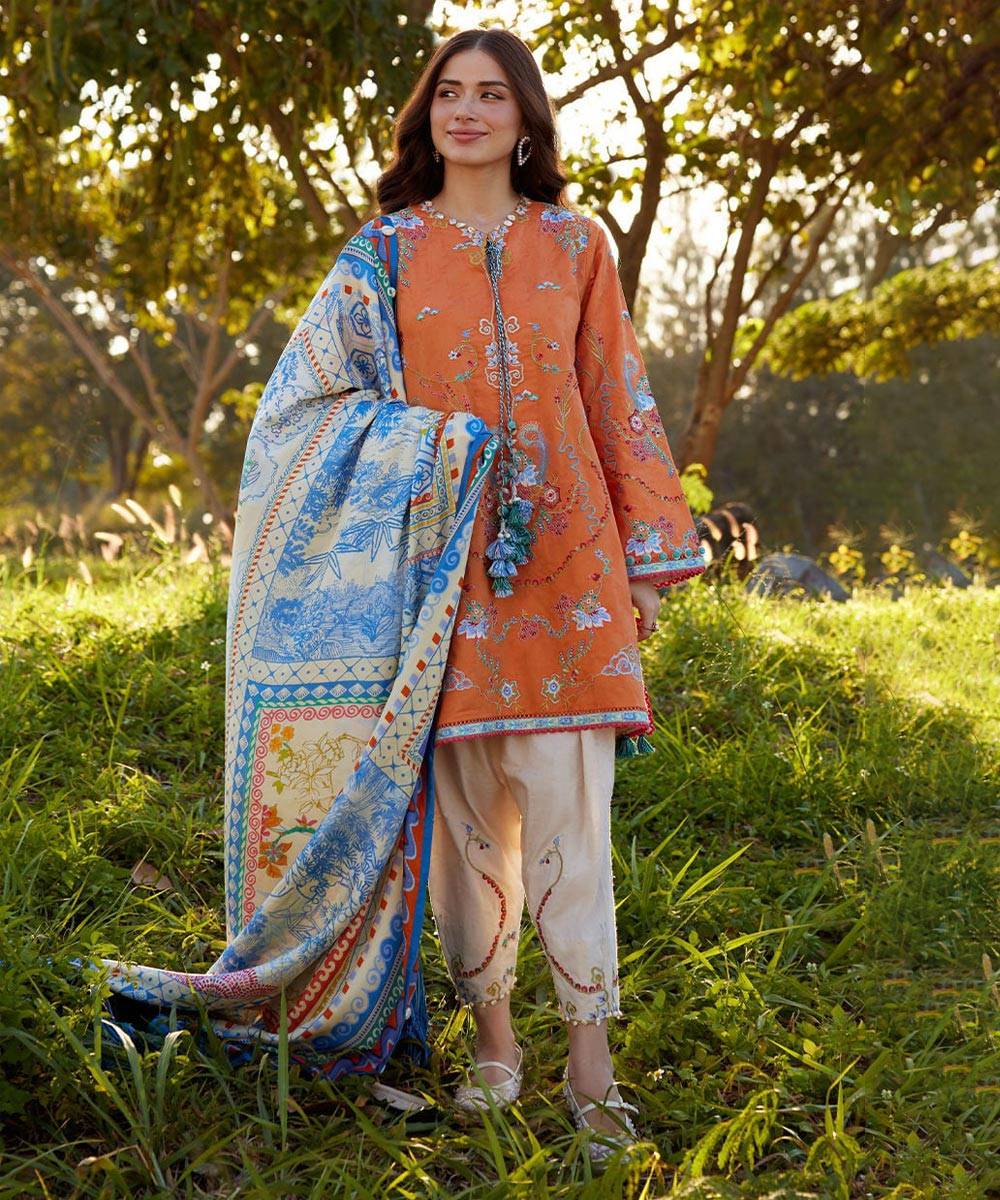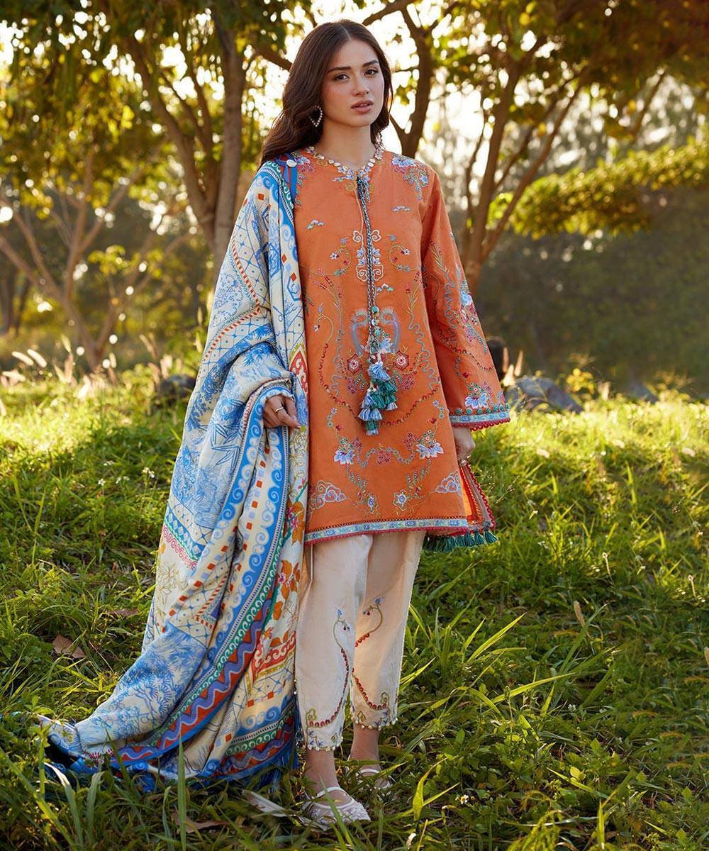 Farah Talib Aziz Luv Duv Luxury Lawn ’26 – FTA26-04 Lucia Burnt Orange