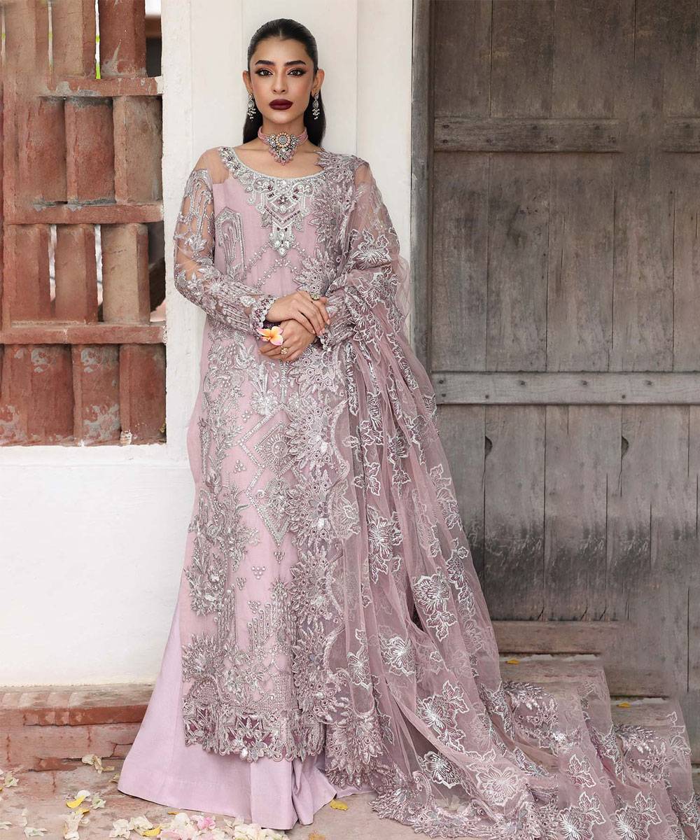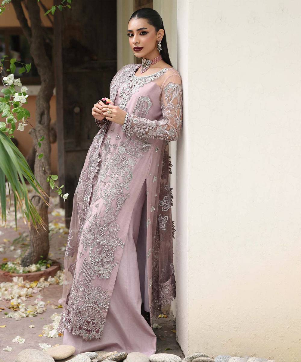Embroidered Organza With Handmade Embellishments For Front
