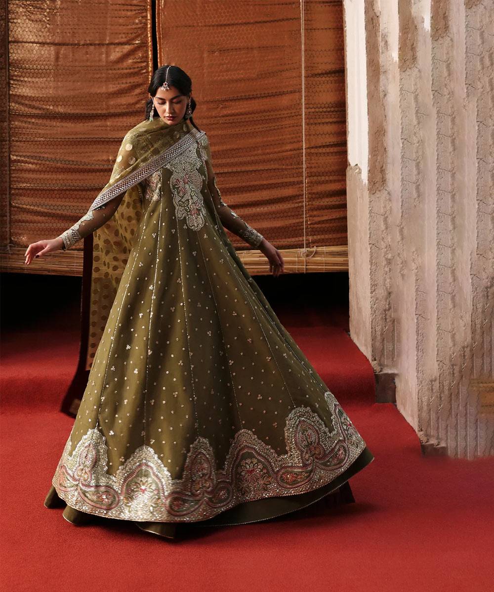 - light olive green raw silk embroidered dupatta pallu border a 2.28 m