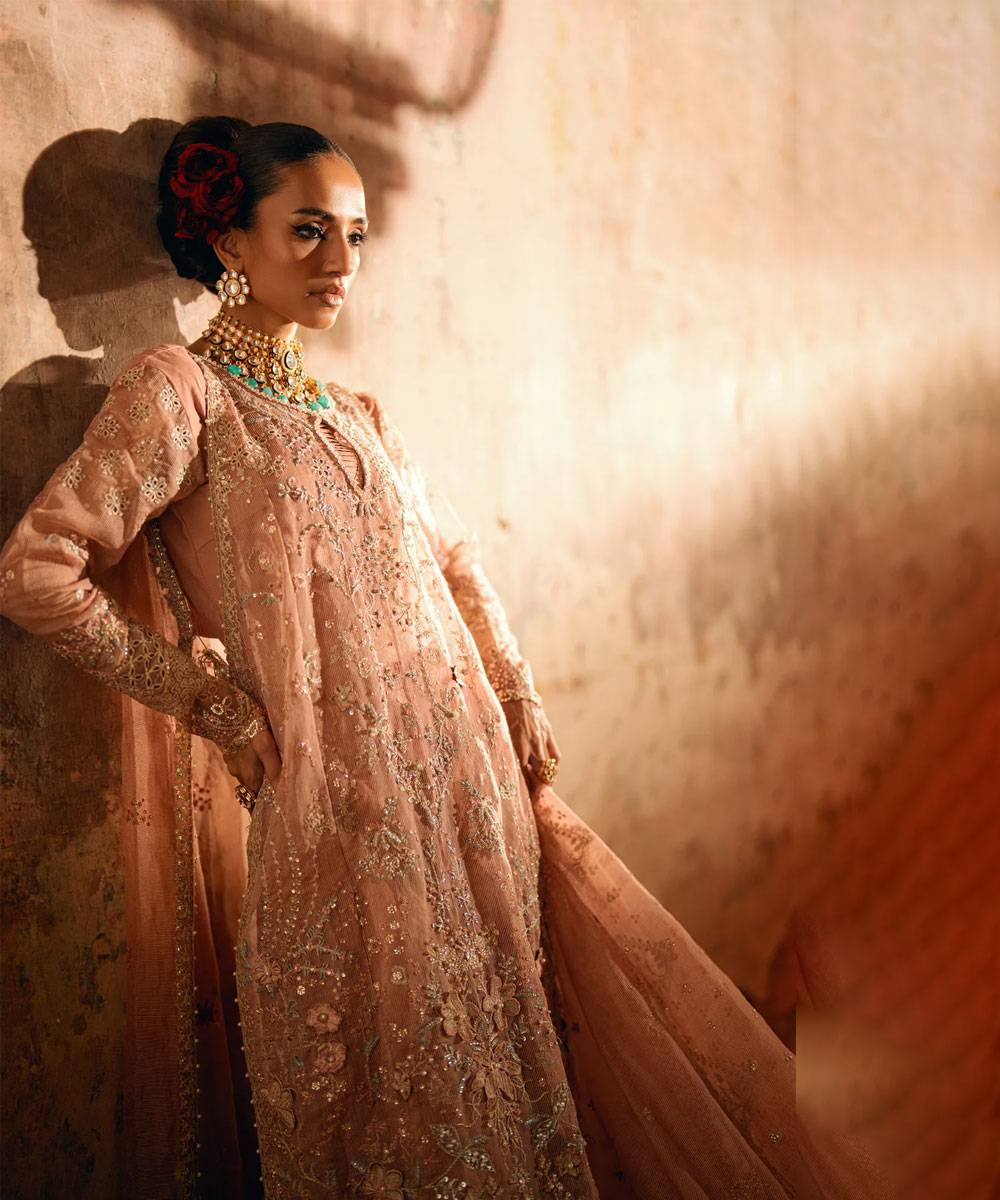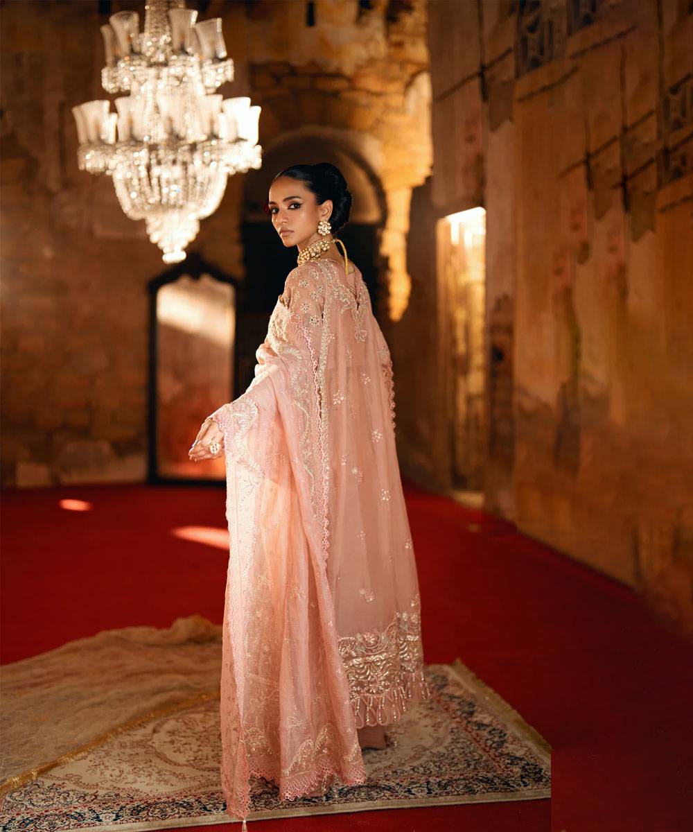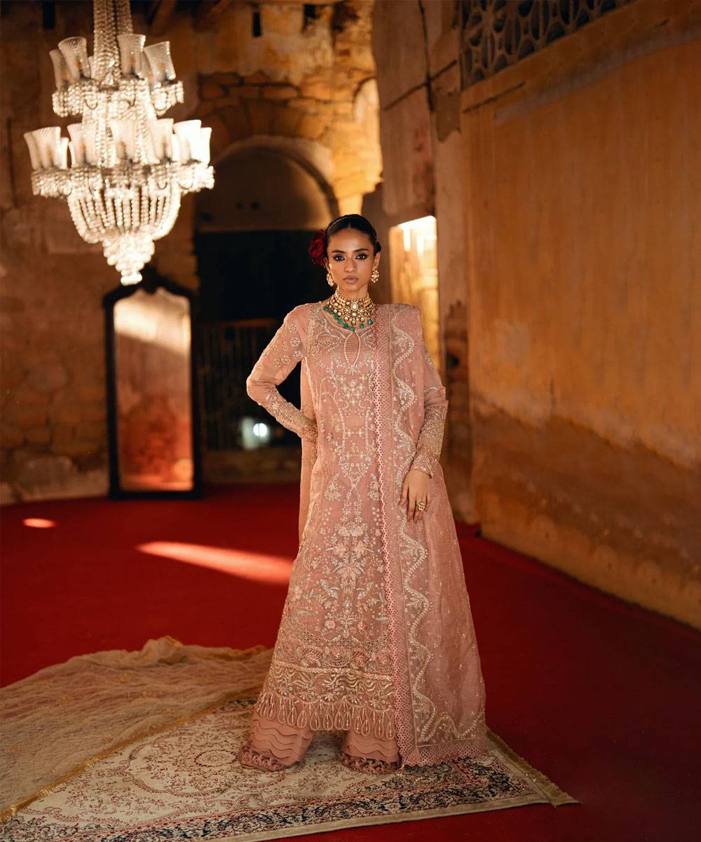 Embroidered Center Panel on Fancy Net (Hand Embellished)