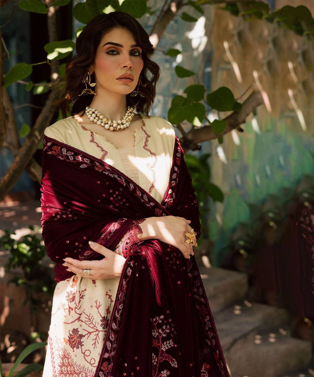 • embroidered velvet shawl