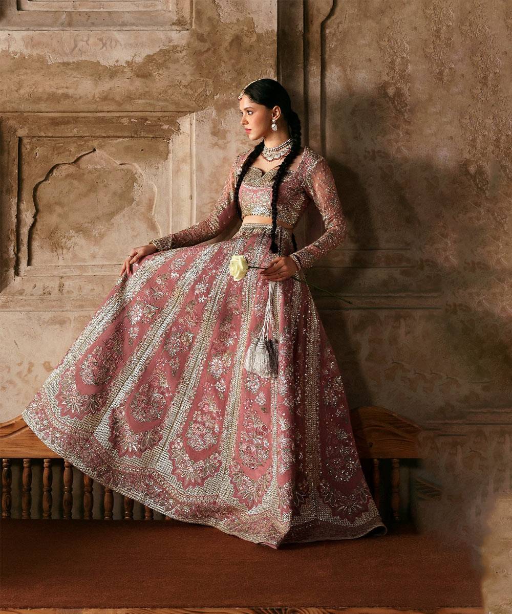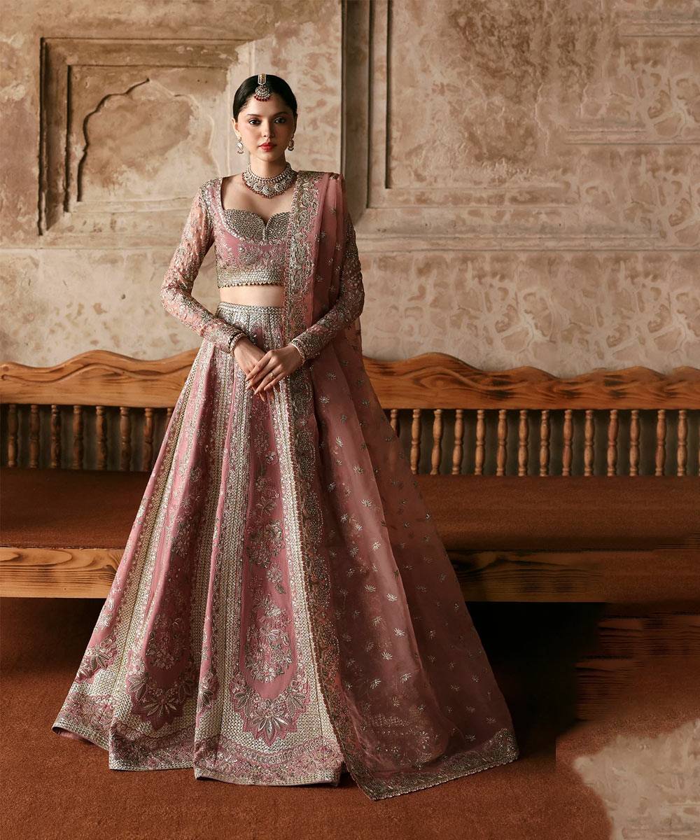 - tea pink organza embroidered dupatta pallu border 2.60 m
