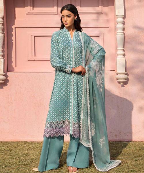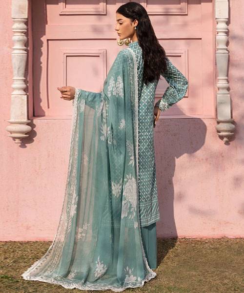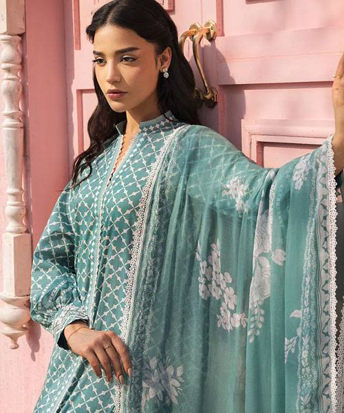 Cross Stitch Premium Unstitched Lawn ‘25 – TEAL GRACE