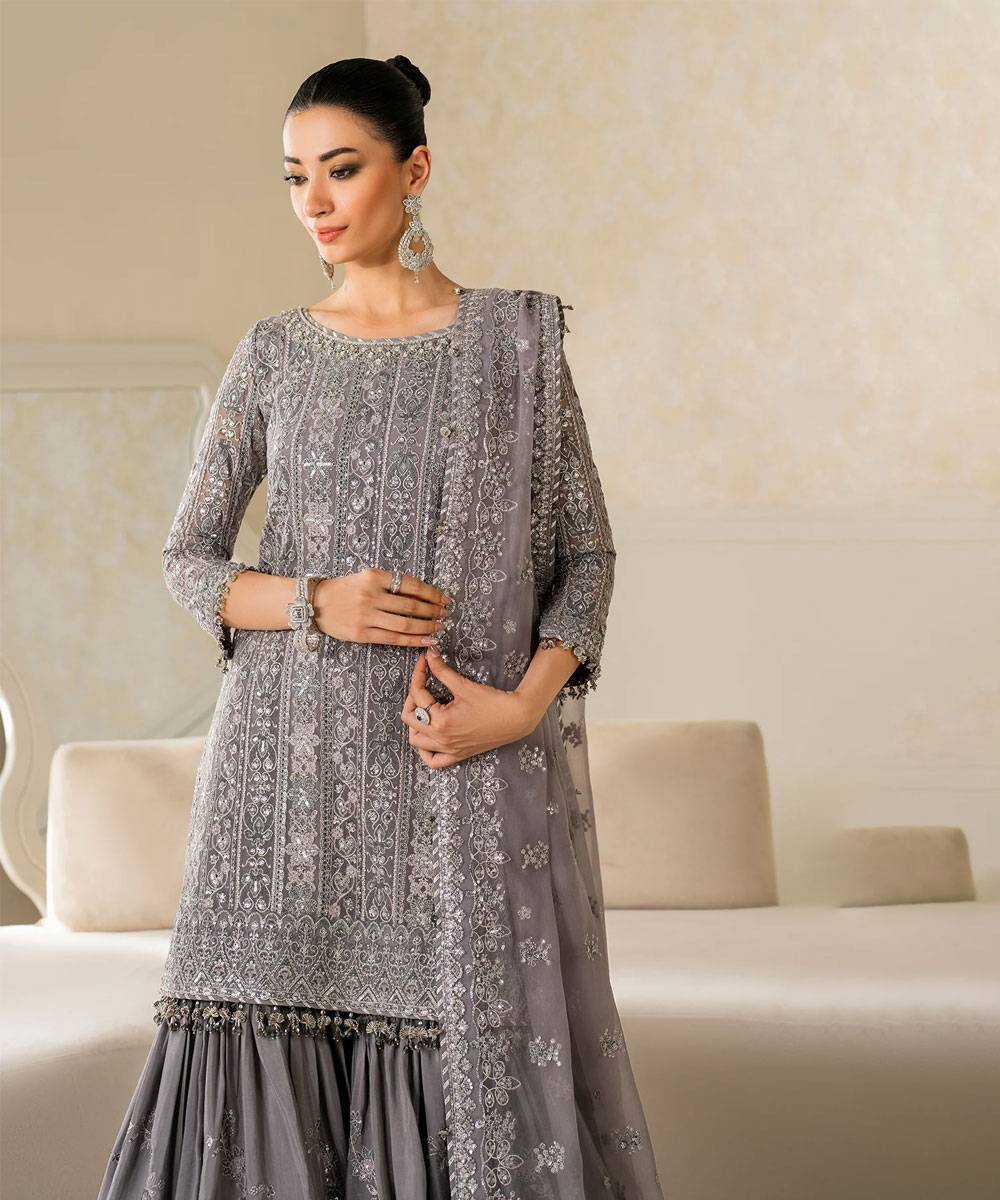 - Embroidered Organza Handmade Neckline